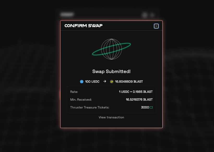 View Transaction: You can view the transaction details on the Blast blockchain explorer by clicking on “View transaction”.