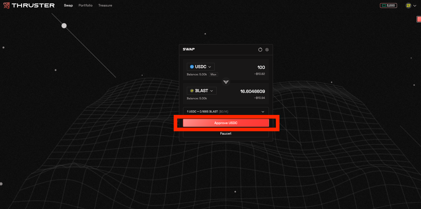 Approve Token Spending (if required): If it's the first time you are trading a particular token on Thruster, you may need to approve token spending.